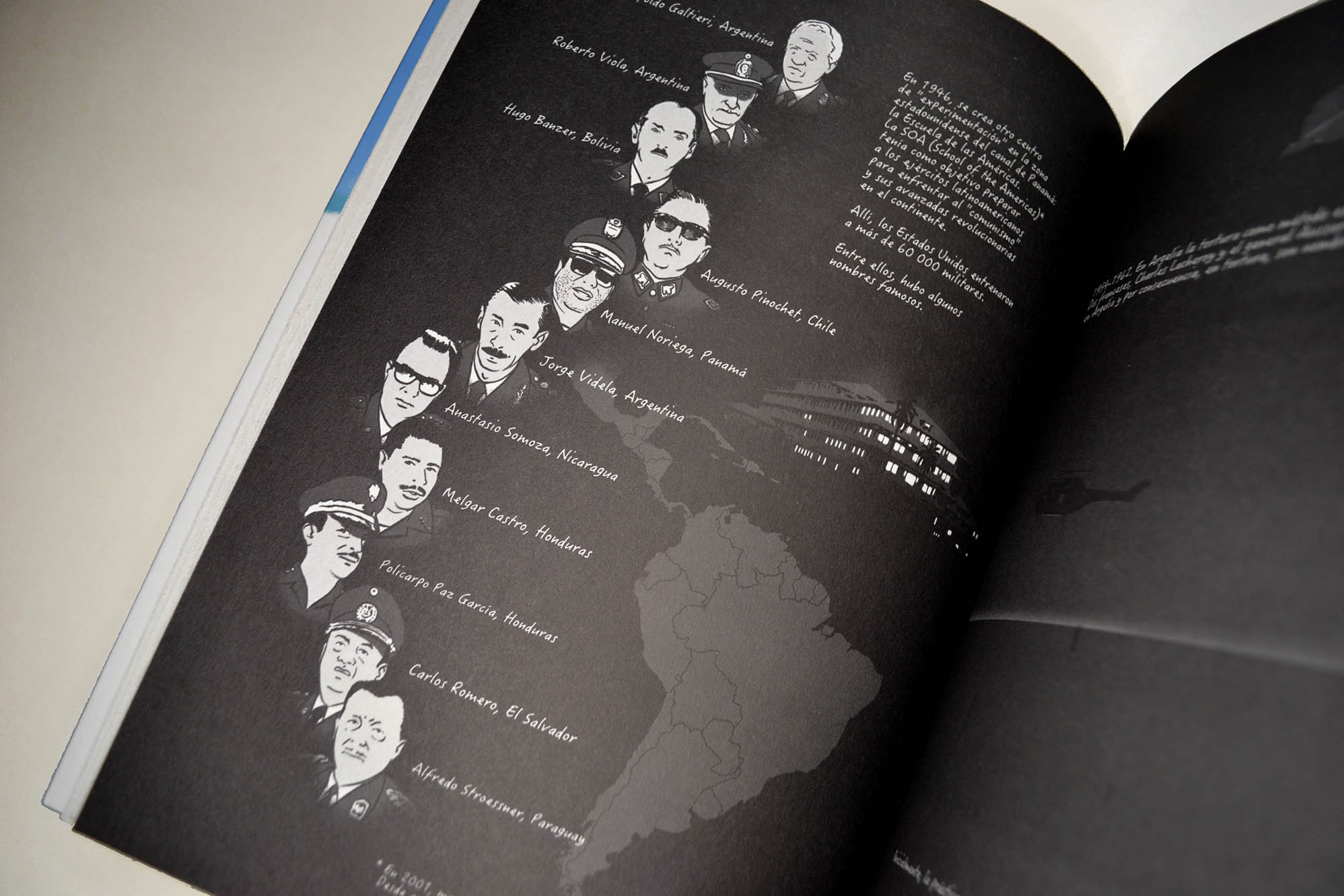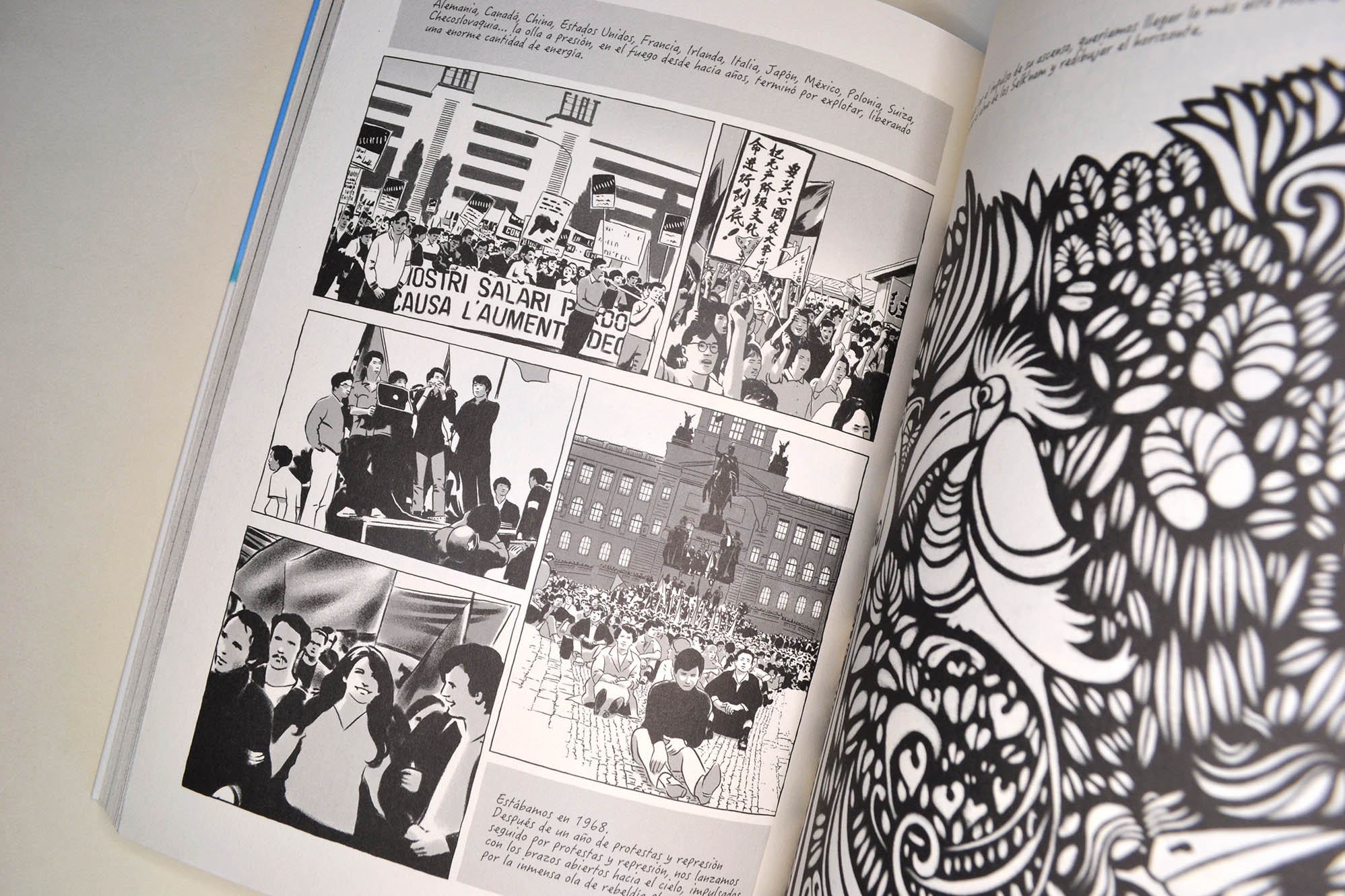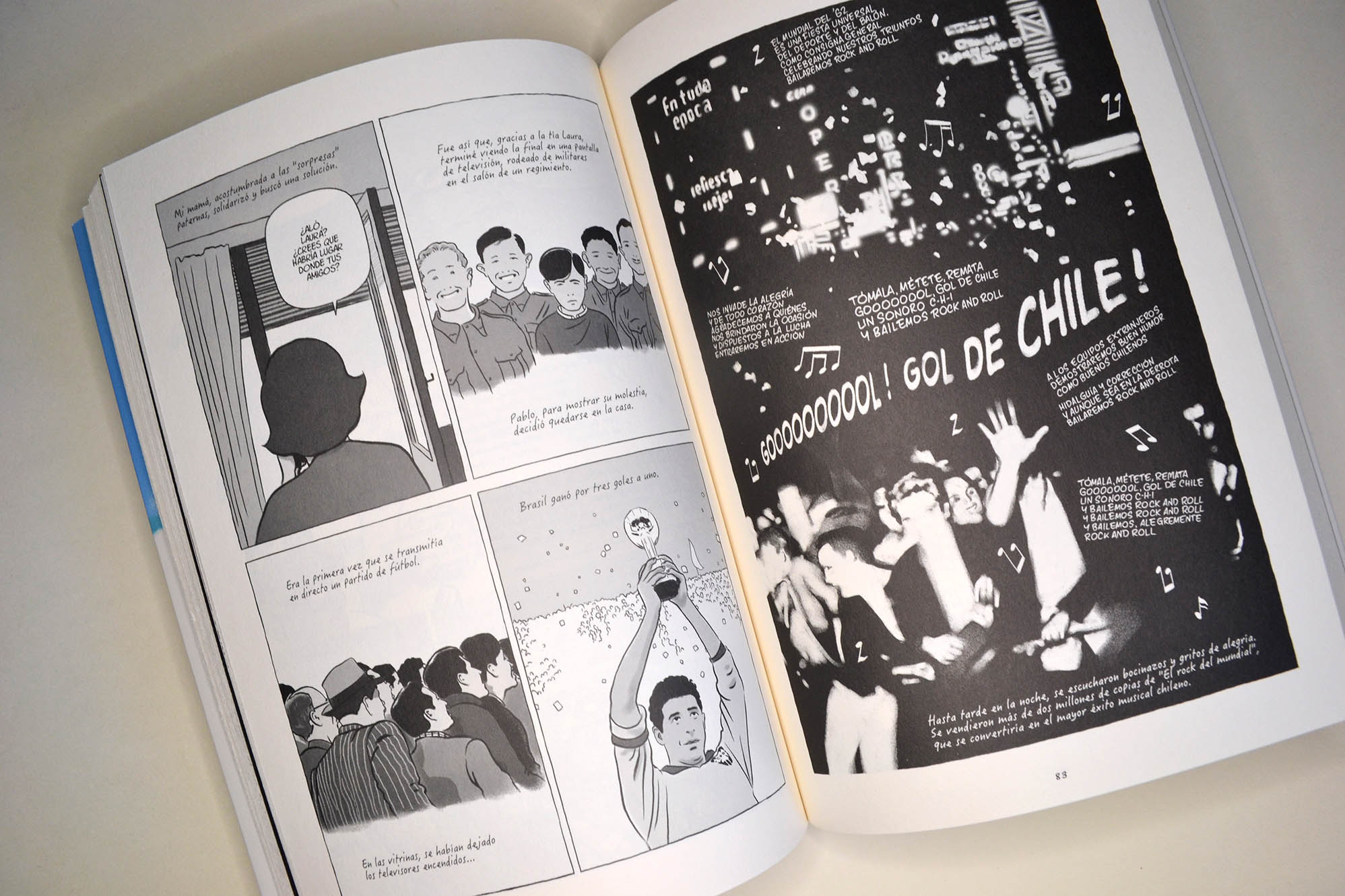 “Esta magnífica novela gráfica propone un recorrido por el Chile de las luchas sociales, de la revuelta creciente, el Chile de toda una generación politizada que condujo a este país, situado “donde se termina la tierra” a la victoria de Salvador Allende en 1970. Esta historia es vista a través de los ojos del joven Pedro, hijo del escritor Guillermo Atías. Exiliado en Francia después del golpe de Estado del general Pinochet, abrió la puerta de su memoria a Alain y Désirée Frappier, y es todo un pueblo movilizado el que aparece: desde las réplicas de la revolución cubana, pasando por la creación del Movimiento de Izquierda Revolucionaria (MIR), hasta la elección del compañero-presidente… Es también un recorrido íntimo, apoyado por ilustraciones en blanco y negro de una fuerza conmovedora, que le otorga tanta relevancia a los magníficos paisajes de Chile, sus volcanes y sus calles, como a las masivas manifestaciones populares en Santiago. “Y de repente, un delirio de alegría invadió las calles de Santiago. […] Los padres habían despertado a los niños, la gente reía, se abrazaba”, los mil días de la “vía chilena al socialismo” habían comenzado”